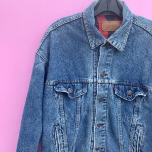 CLASSIC MEDIUM WASH LEVIS DENIM JACKET BUFFALO CHECK FLANNEL LINED