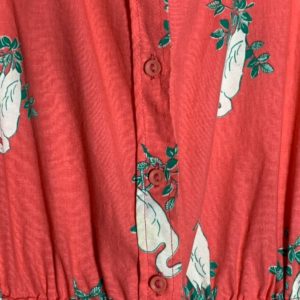1980S SWEET CRANE PRINT COTTON JUMPSUIT SMALL FIT