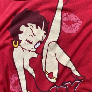 OVERSIZED 1980S BETTY BOOP LEG KICK WITH CUTIE PUP PUDGY LIPSTICK KISS MARK CARTOON PAPER THIN & SOFT T-SHIRT