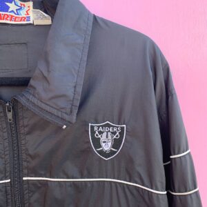 1990S RAIDERS ZIP UP NYLON WINDBREAKER THREE STRIPE RIBBED CUFFS