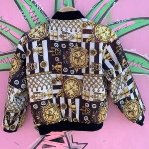 SWEET! 1990S ORNATE BAROQUE PRINT PUFFY BOMBER JACKET – SUPER SMALL FIT!
