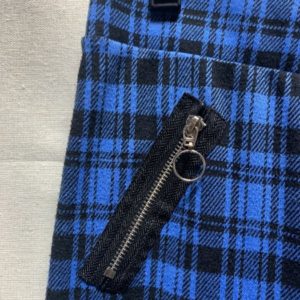 COTTON STRETCH PLAID PANTS CROPPED CUT ZIPPER POCKETS