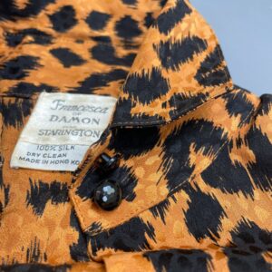 1980S 100% SILK LEOPARD PRINT BATWING COLLARED FULL BUTTONED MINI DRESS
