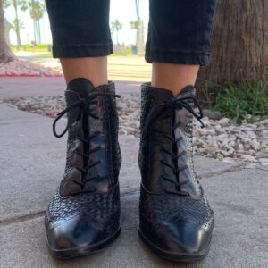 BASKET WEAVE LACE UP VICTORIAN STYLE POINTED TOE HEELED LEATHER BOOTS BOOTIES