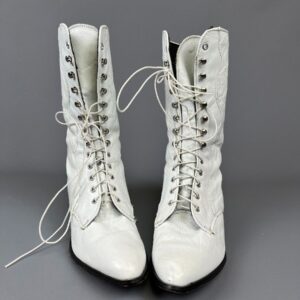 1980S VICTORIAN STYLED WHITE LACE UP HEELED LEATHER BOOTS