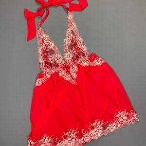 ADORABLE! FULLY SHEER LACE TRIM HALTER NECK LINGERIE MINI DRESS