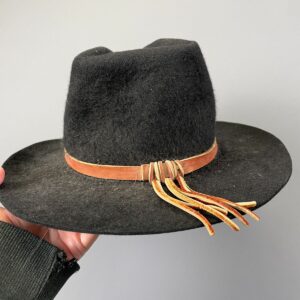 WOOL FELT STRAIGHT BRIMMED COWBOY HAT LEATHER HAT BAND