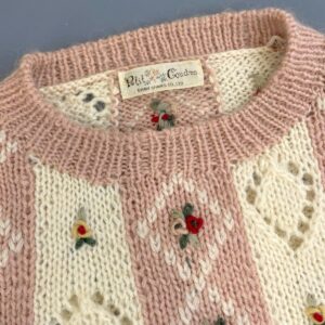 SO SWEET!!!! 1980S PASTEL WOOL & MOHAIR PERFORATED CHUNKY KNIT FLOWER DESIGN SWEATER