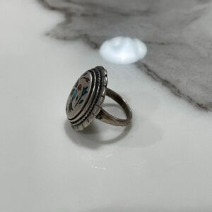 HUMMINGBIRD CRUSHED & TURQUOISE INLAY RING STERLING SILVER