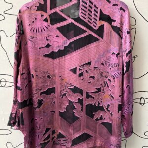 CROPPED SILK KIMONO FAN PATTERN CLOUD LINING