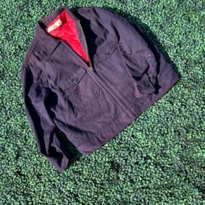 LATE 1960S HEAVY ZIP UP NYLON BLEND TWILL WORK WEAR JACKET RED QUILTED INTERIOR LINING