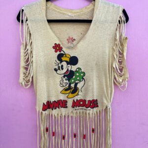AWESOME EARLY 80S MINNIE MOUSE CROPPED & FRINGED PAPER THIN TOP