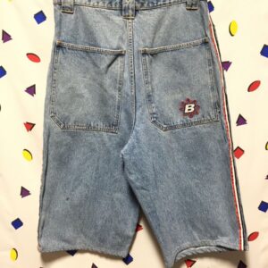 1990S LONG VINTAGE RAVE STYLE DENIM SHORTS WITH SIDE STRIPE