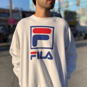 1980S CLASSIC WHITE FILA PRINT LOGO SWEATSHIRT WITH POCKETS