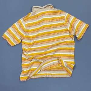 *AS-IS* 1980S HORIZONTAL STRIPED POCKET POLO SHIRT EMBROIDERED HANG TEN LOGO CONTRAST COLLAR