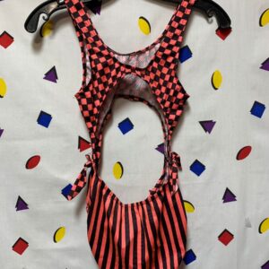 1980S DEADSTOCK CUTOUT CHECKERED STRIPES ONE PIECE BATHING SUIT