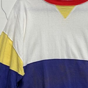 *AS-IS* AWESOME! 1970S-80S HORIZONTAL PRIMARY COLOR STRIPED T-SHIRT EMBROIDERED HANG TEN LOGO