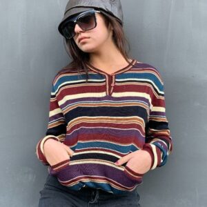 DEADSTOCK 1980S HORIZONTAL STRIPED RETRO CREWNECK SWEATSHIRT