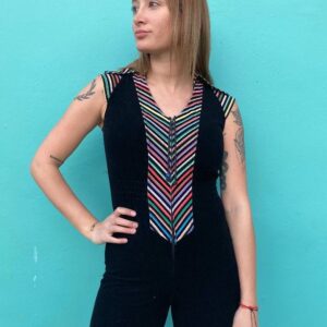 UNREAL VELOUR JUMPSUIT MULTI COLORED STRIPED COLLAR AND CAP SLEEVES