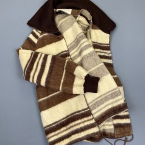 *AS-IS* 1960S-70S HEAVY WOOL STRIPED ZIPUP JACKET W/ OVERSIZED KNIT COLLAR