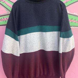 1990S CONTRAST COLLARED HENLEY STYLE SWEATSHIRT W/ COLOR BLOCKED STRIPES