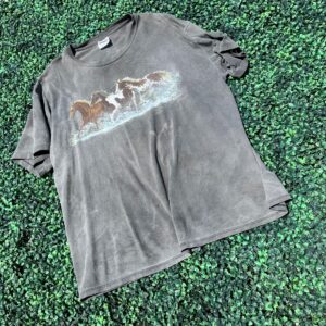 *AS-IS* 1990S WILD HORSES RUNNING DESIGN BLEACHED TIE-DYE COTTON SINGLE STITCHED T-SHIRT