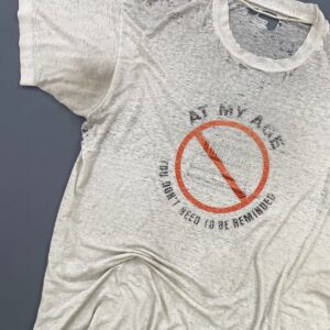 *AS-IS* THREADBARE NO BIRTHDAY CAKE GRAPHIC AT MY AGE YOU DONT NEED TO BE REMINDED T-SHIRT