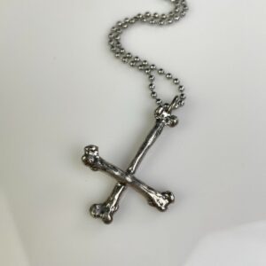 INVERTED CROSS BONES SOLID BRASS PENDANT NECKLACE, CLASSIC BALL CHAIN