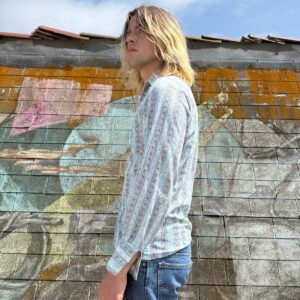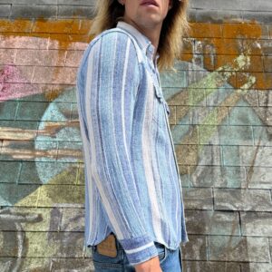 DEADSTOCK 1970S VERTICAL STRIPED TERRY CLOTH COLLARED POCKET SHIRT NWT NOS