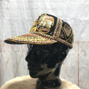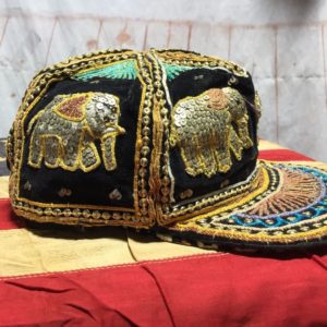 VELVET HAT W/ BURMA INDIA EMBROIDERED HEARTS & ELEPHANTS DESIGN