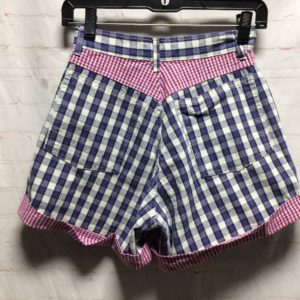 1980’S HIGH WAISTED & CUFFED COLOR-BLOCK W/ PLAID DESIGN SHORTS