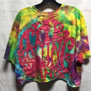THE ROLLING STONES TIE-DYED & CROPPED TOP W/ CLASSIC TONGUE LOGO IN PUFFY INK