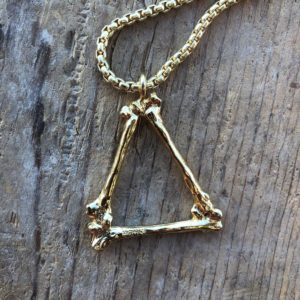 HEAVY CABLE CHAIN LINK NECKLACE WITH TRIANGLE BONES PENDANT