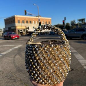 AMAZING! 1960S MINI BEADED STRUCTURED HANDBASKET EVENING BAG