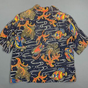 *AS-IS* 1940S-1950S RAYON HAWAIIAN SHIRT, BRIGHT UNDER THE SEA FISH & CORAL GRAPHIC