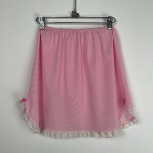 ADORABLE! CHAIN STITCHED EMBROIDERED POODLE SEER NYLON MINI SKIRT LACE TRIM