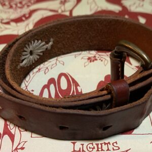 SIMPLE NARROW LEATHER BELT STARBURST STITCHING BRASS BUCKLE