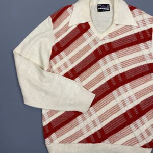 SUPER COOL 1970S CROSS STRIPED KNIT COLLARED SWEATER
