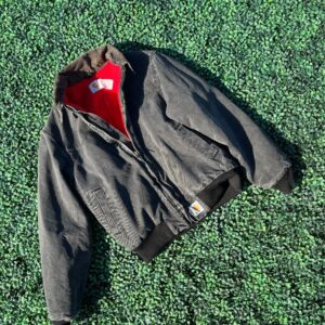 PERFECT FADED CANVAS CARHARTT WORK WEAR JACKET CORDUROY COLLAR AND RED INNER LINING