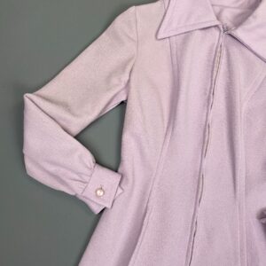LATE 1960S EARLY 1970S LONG SLEEVE LAVENDER COLLARED POLYESTER MINI DRESS