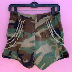 RAD CUSTOM REPURPOSED CAMOFLAGE SHORTS W/ HANGING CHAINS & CUTOUT POCKETS