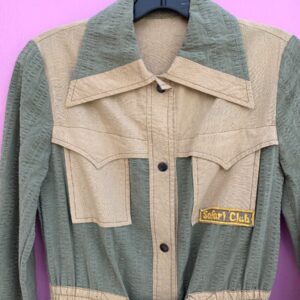 SAFARI STYLED MULTI POCKETED LONG SLEEVE SNAP UP MIDI DRESS WITH SAFARI CLUB PATCH