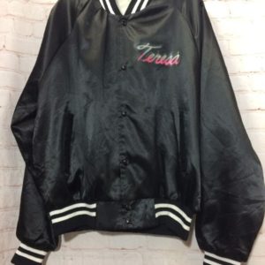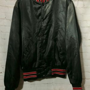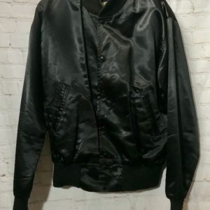 1970’S RETRO SATIN JACKET ZIP-UP W/ STRIPED COLLAR & CUFFS