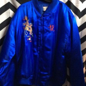 BLUE SILKY PUFFY BOMBER DRAGON EMBROIDERY