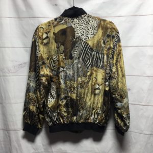 100% SILK SAFARI ANIMAL PRINTED BOMBER JACKET RIBBED CUFFS & COLLAR