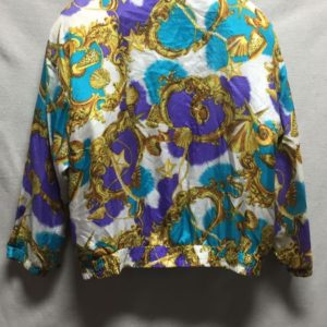 1990’S TROPICAL FLORAL CRACKLE PRINT SILKY BOMBER JACKET