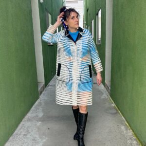 1960S MADE IN JAPAN VINYL STRIPE BLACK TRIM TRANSPARENT RAIN JACKET
