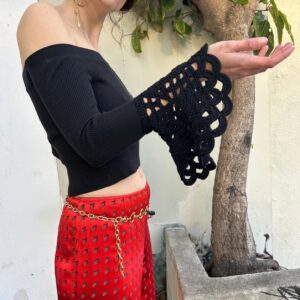 OFF THE SHOULDER HEAVY KNIT CROP CROCHET BELL SLEEVE TOP