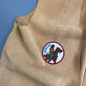 HAND-STITCHED SUEDE VEST WITH NATIVE AMERICAN PATCHES
