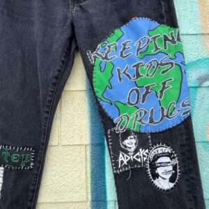 AWESOME HAND CUSTOMIZED PUNK PATCHED BLACK DENIM JEANS